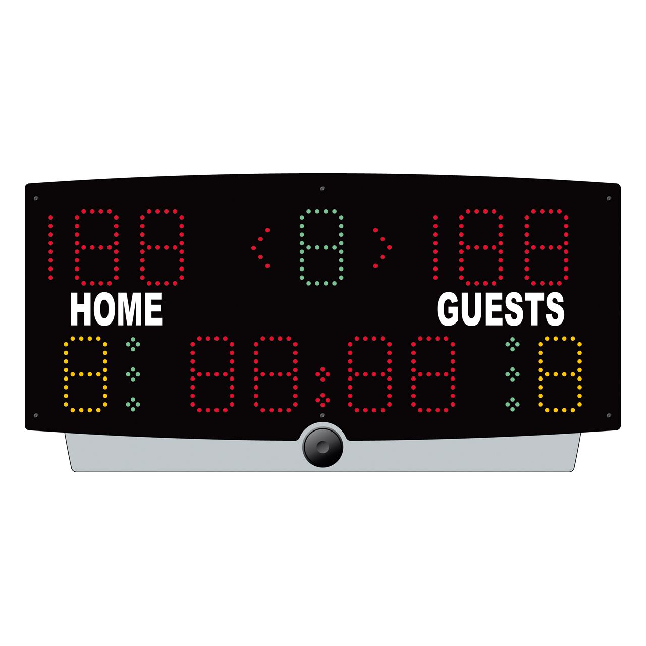 Suitable for basketball, handball, volleyball, tennis, table tennis, badminton, five-a-side football and hockey also with a free mode to customise your own sport programme. This is a compact, portable autonomous scoreboard with a high quality LED display. Retractable control console keyboard and the facility to save information. Scores up to 199.